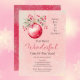 An elegant pink to reddish hued luxury Christmas holiday bauble adorned with crystals and lush winter greenery and berries is the focus of this "The Most Wonderful Time Of The Year!" party design. The word "Wonderful" is done in a beautiful uneditable script text font, and the back features a coordinating distressed snow laden background to add to the festive nature of this design. All that is needed is your details to make it a memorable celebration!
