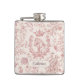 Elegant Pink Beige Equestrian Floral Toile Name Hip Flask