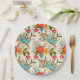 Elegant Pink Blue Green Floral Leaves Pattern Paper Plate