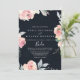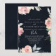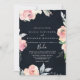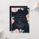 This elegant pink blush floral Spanish wedding invitation is perfect for a simple wedding. The design features hand-drawn pink blush roses and peonies with green and grey leaves in a dark blue background, inspiring natural beauty.