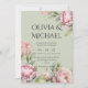 Elegant pink blush peonies in pale soft watercolors surround fancy typography on this wedding invitation. Sage green background sets the beauty of this invitation for a very romantic wedding Invitation. Simply beautiful.