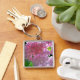 Elegant pink boho florals flowers hydrangeas keychain