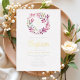 Elegant Pink Botanical Religious Girl Baptism Foil Invitation.