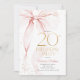 Elegant pink bow 20th birthday invitation. Feminine design in blush pink and gold. Features trendy watercolor coquette bow, and modern typography font. Perfect for an elegant style women's bday celebration. Personalize with your own details. Printed Zazzle invitations or instant download digital printable template.