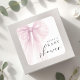 Featuring a large, ethereal pink ribbon bow illustrated with delicate watercolor textures, this square sticker adds a sophisticated and heartfelt touch to your party favors or thank you gifts. The clean white background highlights the elegant mix of classic serif and graceful script typography, creating a high-end look for your event stationery.