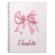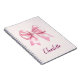 "Elevate your note-taking in style with our Elegant Pink Bow Personalized Name Spiral Notebook. Featuring a soft blush pink background adorned with a delicate satin-style bow, this notebook is customized with your name or initials in a graceful, flowing script font. Perfect for work, school, or journalling, this chic notebook combines elegance with practicality, making it a lovely addition to your stationery collection."