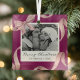 Elegant christmas holiday glass ornament featuring a stunning wine background, with a photo centrepiece adorned by beautiful pink watercolor ribbon and bow. Complete with your family name, the year and the seasons greetings "merry christmas".