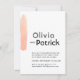 Modern simple Wedding Save the Date. Elegant delicate peach watercolor brush stroke. Card feature modern black text on a clean white background. A simple and stylish look.