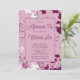 Elegant sakura or cherry blossoms, bridal shower afternoon tea invitation. Delicate pink flowers with modern burgundy and white cherry blossoms offset shadow. Pink backpack ground.