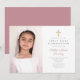 Elegant Pink Religious Cross Girl First Communion Photo Invitation.