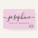 Keywords: Elegant Pink Name Badge, Custom Business Logo, Script Name, Chic and Stylish, Professional Look, Modern Design, Personalized Branding, Sophisticated Font, Vibrant Pink Colour, Eye-Catching, Professional Image, Cohesive Brand Identity, Legible Script Font, Practical Tool, Networking, Positive First Impression, Staff Name Badges, Unified Look, Professional Connections.