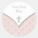 Elegant Pink Damask Christening Stickers