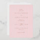 This elegant foil invitation features a soft pink background with subtle diagonal stripes, creating a modern and sophisticated look. The design uses graceful script typography for an introductory note and clean serif fonts to highlight the names and event details, ensuring clarity and readability. Its minimalist aesthetic, with ample negative space, conveys warmth and celebration, making it perfect for formal occasions like weddings. Customizable elements allow personalization while maintaining a cohesive colour palette of light pastel pinks, enhancing its refined charm.