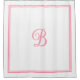 Classic and stylish monogrammed shower curtain. This design features pink double border script monogram letter. Personalize the script monogram letter with your favourite letter. first or last name initial. This baby pink and white colour shower curtain will be perfect as personalized gift.