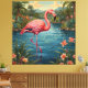 A vintage paradise with this retro-style pink flamingo, poised elegantly in a tranquil tropical lagoon.