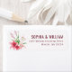 This elegant label features a beautiful floral motif with pink lilies and green stems, arranged in a realistic style that adds a touch of natural beauty. The design is complemented by classic serif typography, which provides a sophisticated and formal appearance. With its soft color palette and refined illustration technique, this label conveys an atmosphere of celebration and sophistication, making it perfect for special occasions or personalized stationery.