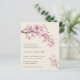 Elegant floral themed budget wedding invitation featuring a branch consisting of watercolor painted pink cherry blossom flowers over the top left and in the bottom right corner, over an ivory background. Your details are in a deep brown colour and in left alignment. This chic design is great for a spring or summer wedding. These cheap wedding invitations are printed on sheets of paper for a budget friendly option.