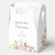 Beautiful pink and ivory watercolor flowers with Christian cross favour box for a girl's confirmation party. Lovely religious design featuring an elegant floral bouquet and a pretty cross behind your name for your gathering or Catholic ceremony.