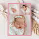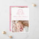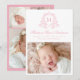 Announce your baby’s arrival with this elegant, soft pink photo birth announcement card. The front features your baby’s monogram initial framed by a delicate floral crest in soft pink on a white background. Your little one’s full name appears in graceful calligraphy, with space for birth stats, family name, and a horizontal newborn photo below. The back includes a coordinating three-photo collage, perfect for sharing even more special moments. Personalize with your baby’s details and photos to create a beautiful keepsake for family and friends.
