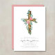 Custom Elegant Pink Floral Cross Girl First Communion Invitation.