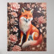 Elegant Pink Floral Fox William Morris Inspired Poster