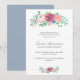 Elegant teacher's day invitation with a flower garland consisting of pastel pink and mauve roses at the top and bottom. Your event details are in a medium grey with the event title in a script font. The back is a dusty blue and may be changed to any colour you wish. This floral design is great for a celebration in the spring.