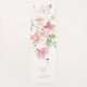 A modern monogram design featuring a delicate, pink floral watercolor with gold script and serif typography on a white background. The monogram and name can be easily personalized.