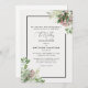 Wedding Invitation. Black typography. Elegant. Foliage. Pink Tropical Floral stems.