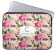 Elegant Pink Floral Monogram Laptop Sleeve
