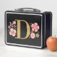 Go back to school in style with this pretty pink floral monogram lunchbox. It is decorated with a gold letter "D" surrounded by flowers. Designed for you by Blackberry Boulevard.