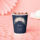 Add a touch of elegance to your drink station with these beautiful disposable paper cups. The design features a delicate watercolor arch of blush pink and cream roses, accented by soft green eucalyptus leaves. Customize the cup with the name and date of the birthday celebration in a sophisticated script font. These customizable cups are perfect for serving hot or cold beverages at a 30th, 40th, 50th, or any milestone birthday, bridal shower, or sophisticated event, offering a charming, cohesive detail to your party setting.