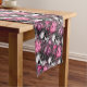 This striking Halloween table runner features a repeating skull and pink rose pattern with dark foliage, creating a bold statement piece for spooky season décor. Perfect for adding moody, stylish accents to your dining space.