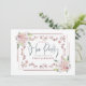 A pretty dusty pink floral and line frame border encompasses the typography on the front and a coordinating floral motif is on the left hand side on the back. The main headers Hen Party on the front and The Details on the back are in a set dark blue script typography and the rest of the text you can easily personalise.