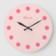 Elegant pink flowers Wall Clock with personalized Bloom text. Ideal for all environments. It makes a good present for Birthdays, anniversaries, gift for a new house, new office, etc.