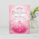 Celebrate her special day in dazzling style with this glamorous Quinceañera invitation! Featuring a dramatic pink and fuchsia ombré ball gown adorned with glitter highlights and a floating crystal tiara, this design captures the essence of a modern princess celebration. The soft blush background with bokeh sparkles adds an ethereal touch, while the blank center leaves space for your personalized event details. Perfect for sweet fifteen celebrations with a feminine, luxurious, and magical aesthetic.