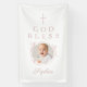 Elegant Pink Girl God Bless Photo Banner. Part of the Modern Pink Baptism Invitation Suite with matching invitation, stationery and party accessories available.