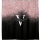 Elegant Pink Glitter Sparkle Monogram Black Custom Shower Curtain. A fun and trendy design with sparkling gold dust glitter effect with a split monogram you can customize! **NOTE - The gold dust/glitter is graphic simulated and not real gold dust. No gold dust/glitter is used in making this.