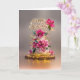 A stunning birthday card featuring a beautifully decorated tiered cake adorned with vibrant pink florals, delicate greenery, and glowing golden accents. Set against a soft, warm background with subtle sparkle, this design creates a romantic and elegant feel—perfect for celebrating someone truly special.
