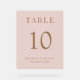 Elegant frosted blush pink acrylic wedding reception table number sign featuring "Table" and the table number in classic gold serif typography, and your names and your wedding date in modern gold typography. Create each table number and add to your shopping cart one at a time, then check out when all numbers are in your cart.