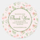 Elegant Pink Green Floral Pattern Thank You Classic Round Sticker