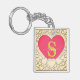 Elegant Pink Heart and Initial, Name Stylish Keychain