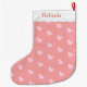 Beautiful and elegant pink heart pattern on pink background personalized stocking. Merry Christmas!