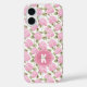 Elegant Pink Hydragea Flowers Pattern Monogram Case-Mate iPhone Case