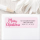 Ces étiquettes d'adresse de retour de Noël rose moderne minimaliste présentent le design typographique avec le modèle pour taper votre adresse. Le dicton "Joyeux Noël" est en caractères décontractés roses.