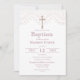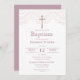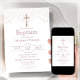 Invite your family and friends to celebrate a special moment with our beautiful baptism invitation. The elegant lace print and gold effect crucifix on a clean white background, paired with the stylish dusty pink lettering and reverse, exude a sophisticated charm. This charming invitation is ready for easy personalization, so you can add your own unique touch and make this event truly memorable. What's more, with the option to instantly download, you can get them sent out in no time. Let this invitation set the tone for a blessed and unforgettable baptism celebration.