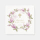 Elegant Pink Magnolia Flowers Wreath Gold Baptism Napkin