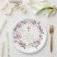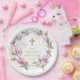 Elegant Pink Magnolia Flowers Wreath Gold Baptism Paper Plate