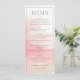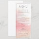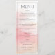 This elegant wedding menu features a soft pink gradient background with crisp, clean lines and ample white space for a sophisticated look. The layout is vertically oriented, with sections clearly divided by uppercase serif headings and simple sans-serif text that enhances readability. Customizable fields allow personalization for names and dates, making it perfect for special occasions. The minimalist design conveys an air of refinement and anticipation, ideal for formal events like weddings.