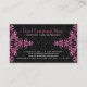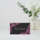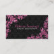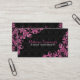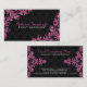 Elegant pink metall floral lace swirls over black floral damasks pattern, business card template. For Event designers, wedding planners