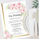 An elegant wedding invitation featuring pink orchids and a stylish gold asymmetric border. This invitation is suitable for weddings where the ceremony is being held in a different location to the reception. Both locations are included on the invitations for your guests’ convenience. Along with this, an RSVP request has been included to remind your guests to confirm their attendance to your special day.